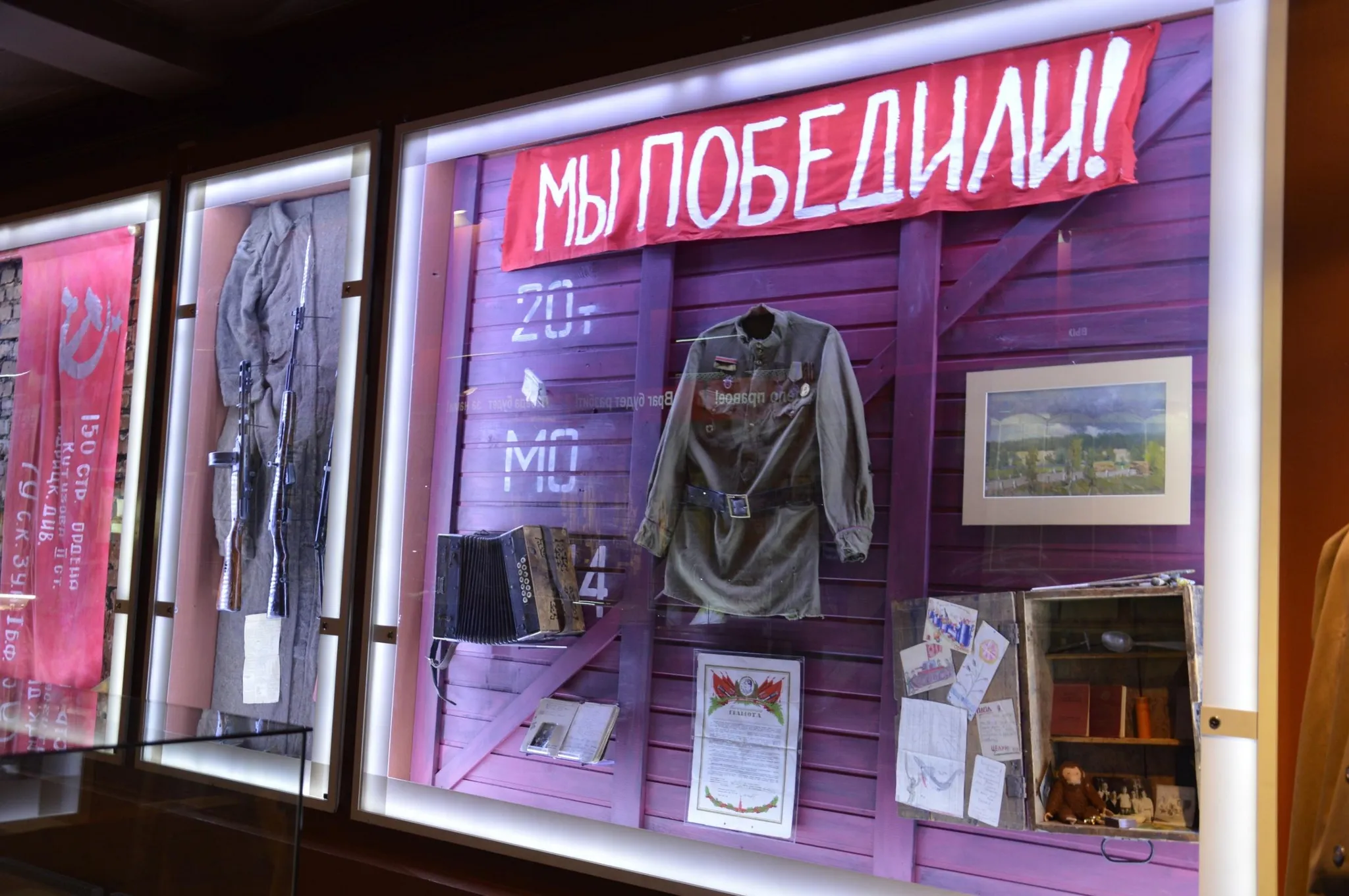 Музей «Мемориал Победы» разделен на два зала — Зал Памяти со списками погибших и без вести пропавших бойцов из г. Красноярска и зал основной экспозиции. В постоянной экспозиции музея отражены различные аспекты истории Великой Отечественной войны. В фондах музея хранится более полутора тысяч экспонатов, основная часть из которых передана в дар горожанами.