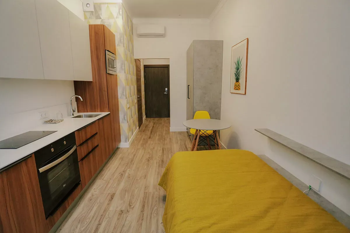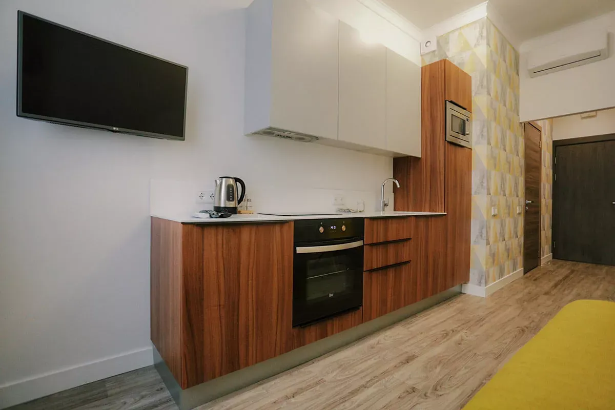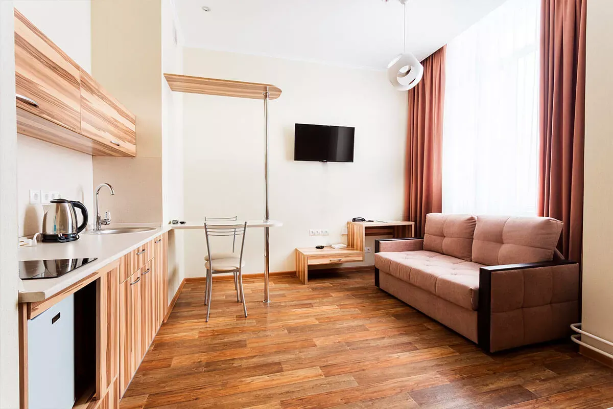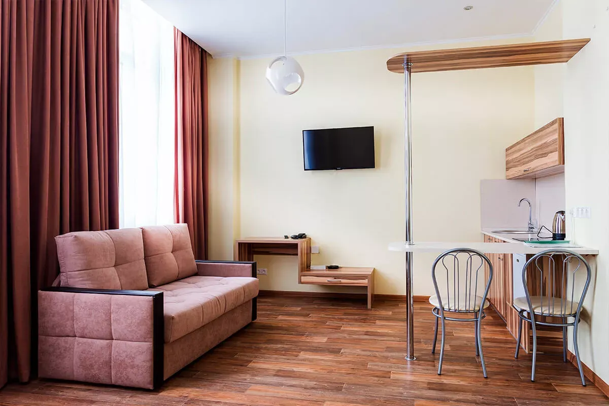 Для тех, кто любит все и сразу. Комфортные номера, оснащенные дополнительными удобствами, совсем как в квартире. Ресторан, магазин и салоны прямо в здании. Удобная транспортная развязка позволит добраться до любой точки города. Для путешественников на авто — бесплатная парковка.