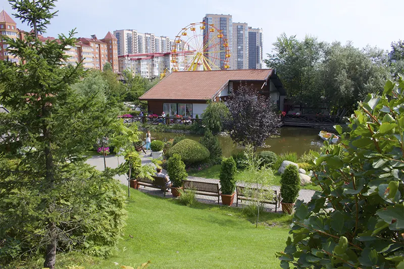 Это позволяет гостям парка наслаждаться отдыхом, не мешая друг другу. Здесь представлено огромное число деревьев, кустарников, цветов, которые приспособлены к климатическим условиям Сибири, что в свою очередь наделяет парк статусом Дендрария.