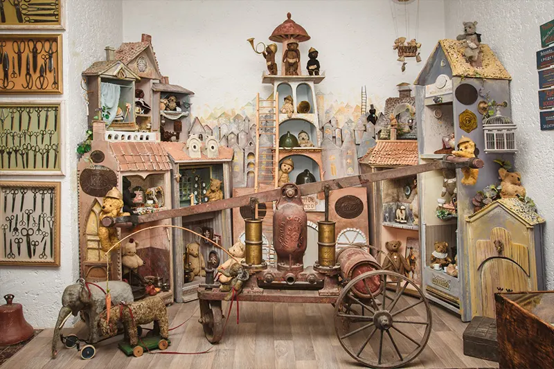 В музее создан целый кукольный город. В этом Наталье Владимировне помогли красноярские мастера. Используя природные материалы, отходы строительства, бывшего в употреблении торгового оборудования, и всякой мелочи, хранящейся в закромах любой рукодельницы, они выстроили дома, магазины, костёл, театр, пожарную часть. Они вдохнули в город жизнь…. Куклы здесь влюбляются, растят детей, ходят к друг другу в гости, рисуют картины, играют в азартные игры и лицедействуют на сцене. Дети хулиганят, без спроса лазают на крышу и запускают в небо шарики, дружат с кошками и собаками. Девочки читают романы и мечтают о принце на белом коне, а мальчики добиваются их внимания. Всё, как у людей. «Хотелось сделать сказку. Чтобы куклы и игрушки не просто стояли в витринах, а жили в той атмосфере и эпохе, из которой к нам пришли», — рассказывает создательница музея.